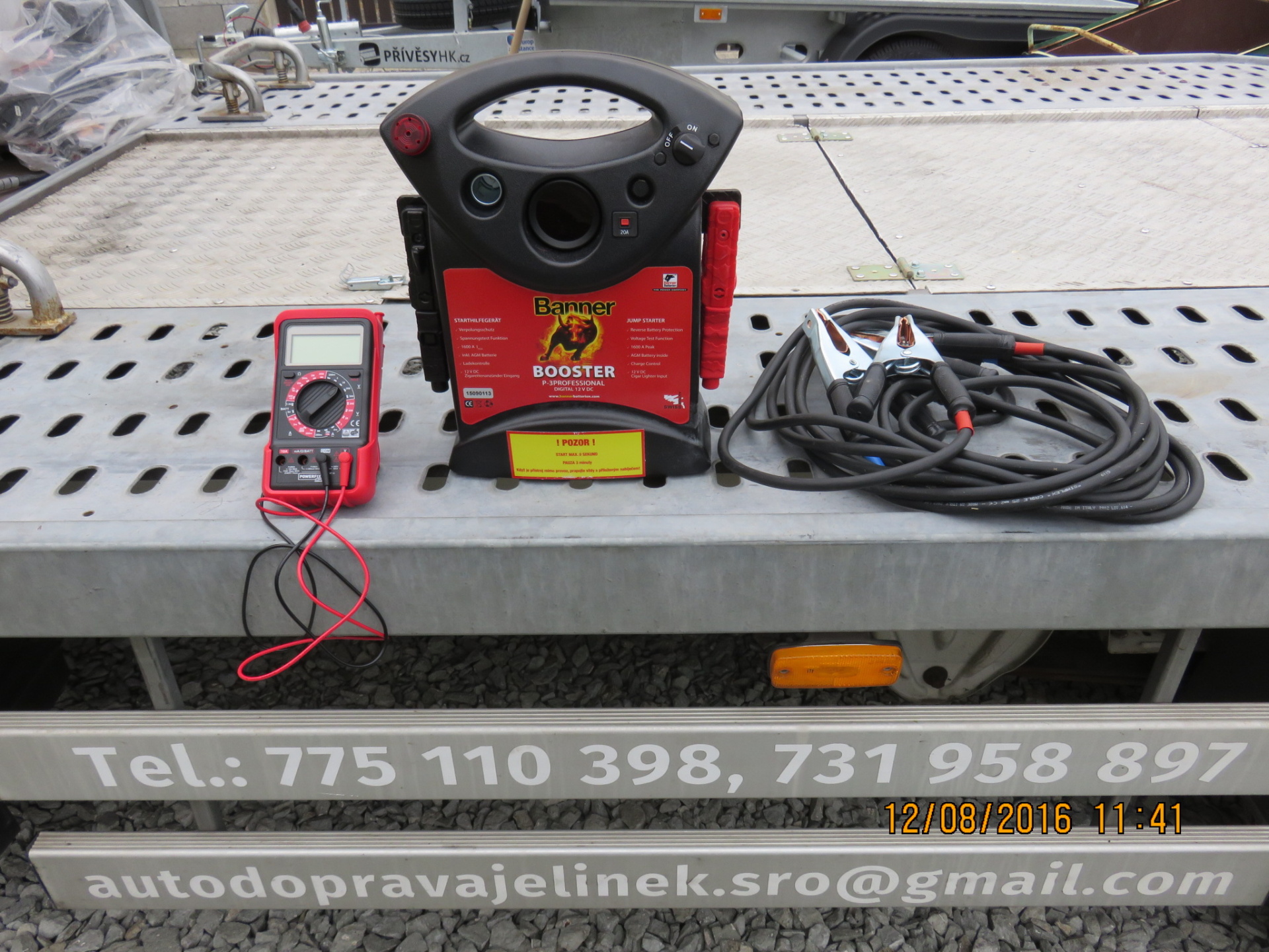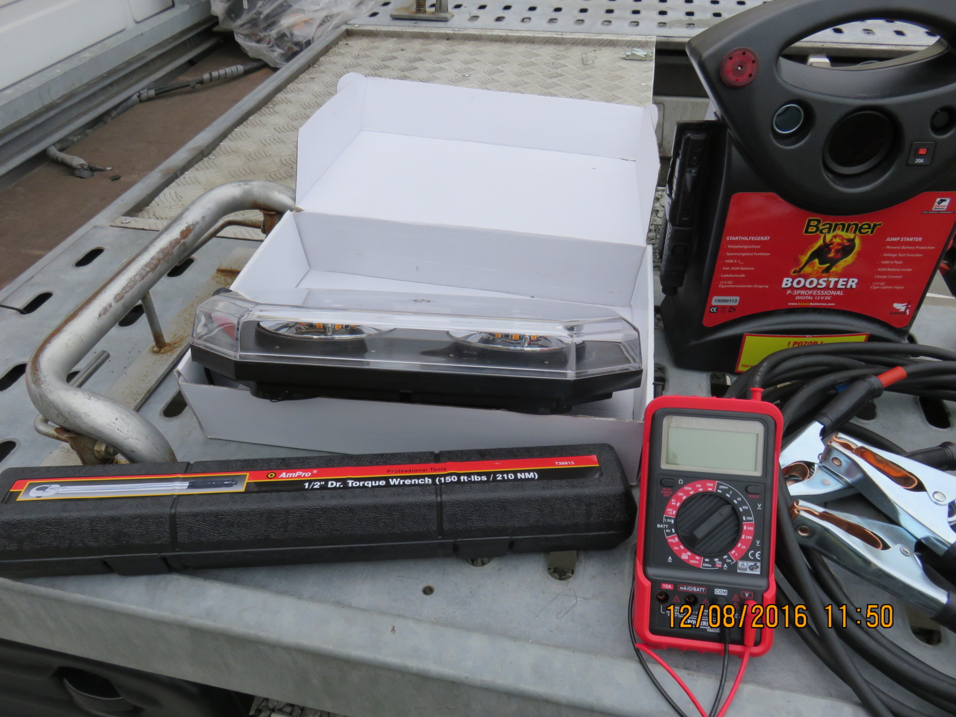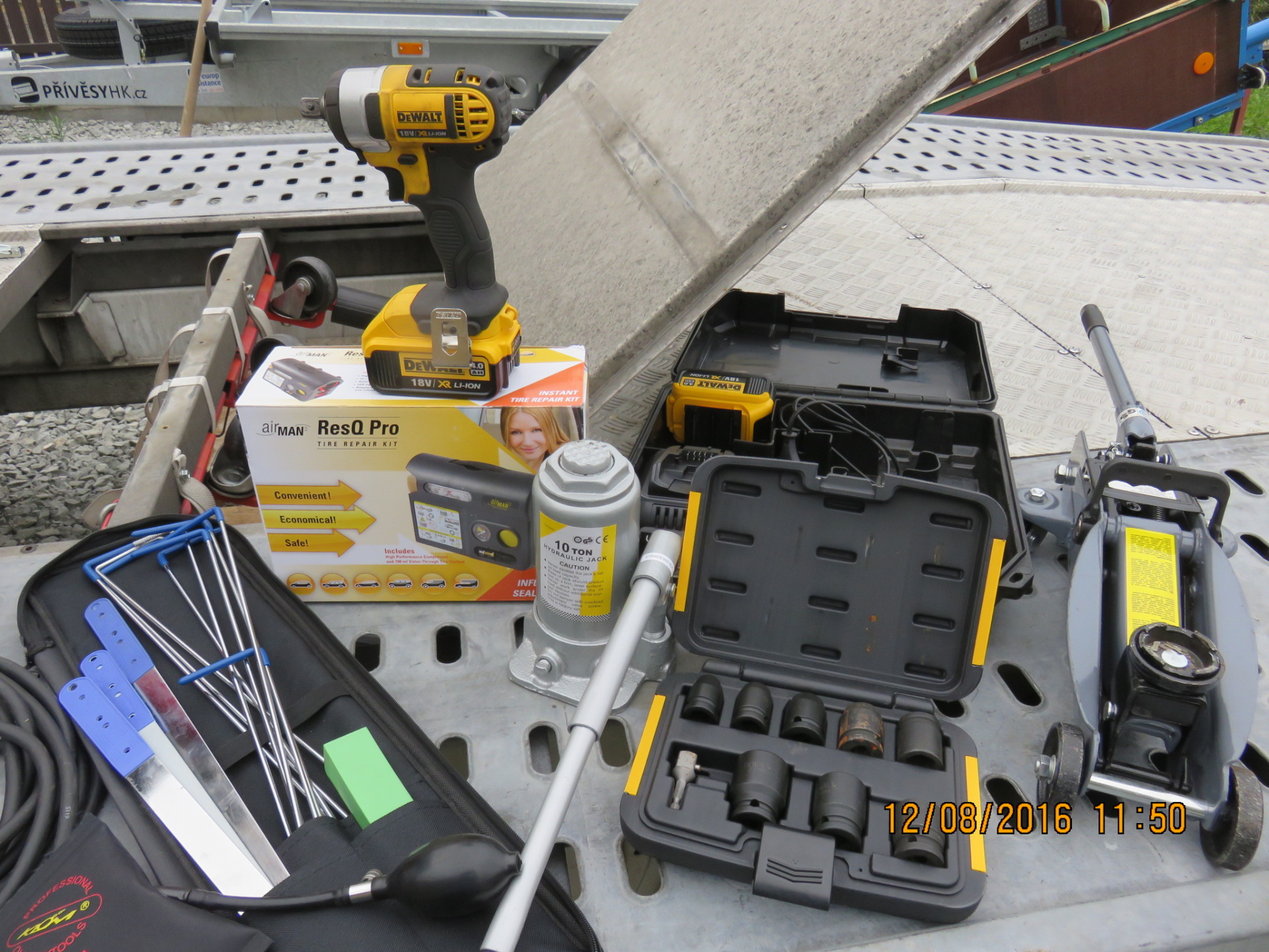 Sada na opravu pneumatik, nářadí pro výměnu kol, sada planžet + balónek na otevření vozu, startovací kabely, pojezdové vozíky, čerpadlo na benzín (záměna paliva), kanystry, držák na přepravu motorek, digitální multimetr, startovací booster, dekodéry zámků dveří vozidel (BMW, WAG, …). Certifikát na překonávání mechanického zabezpečení automobilů, potvrzení o školení „Pravidla bezpečnosti práce na dálnicích a silnicích“, kamerový systém pro ochranu přepravovaného vozu.